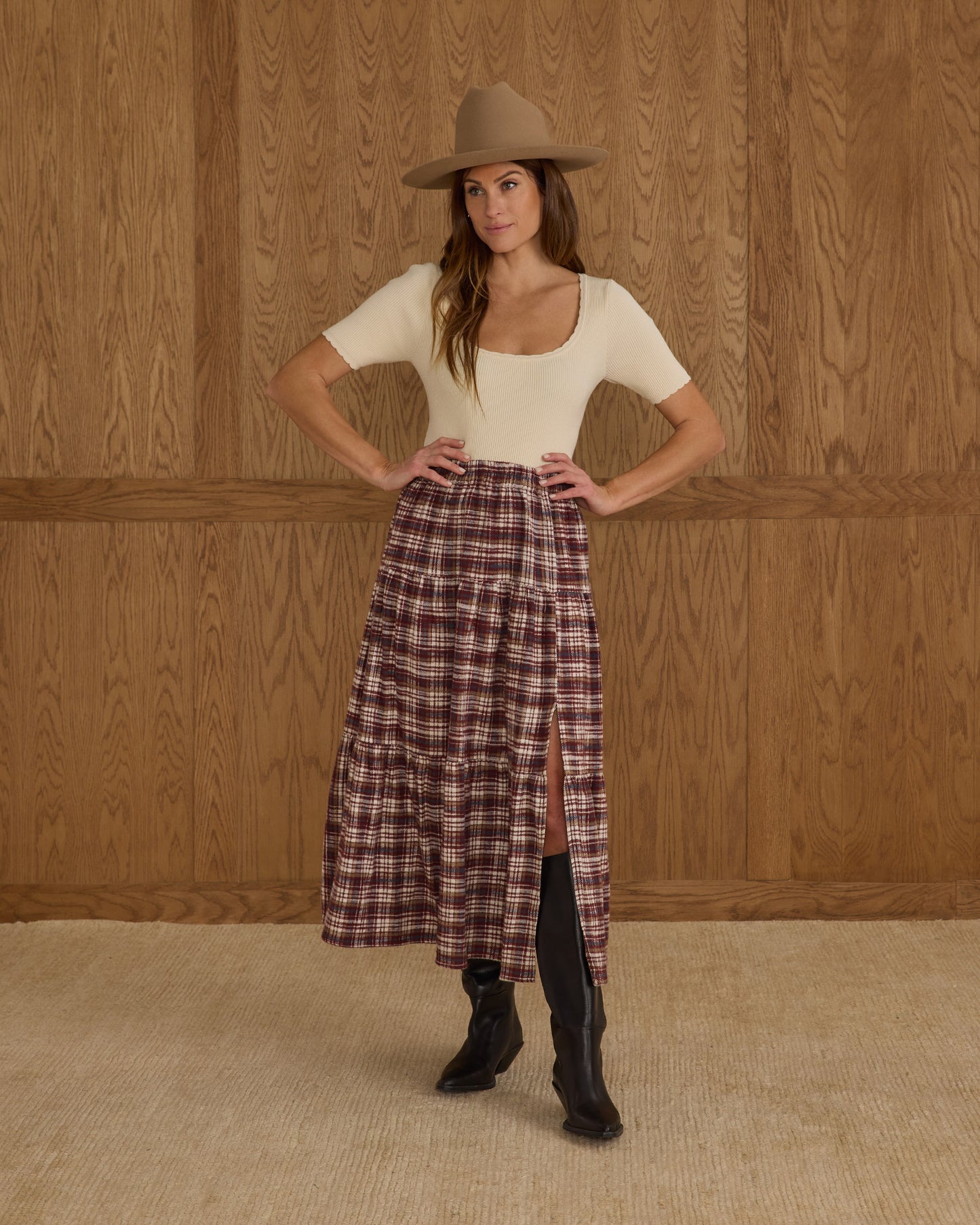 ティアードミディスカート |バーガンディチェック柄